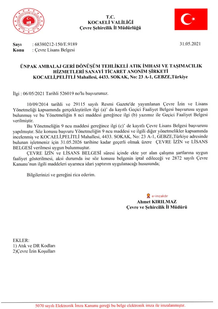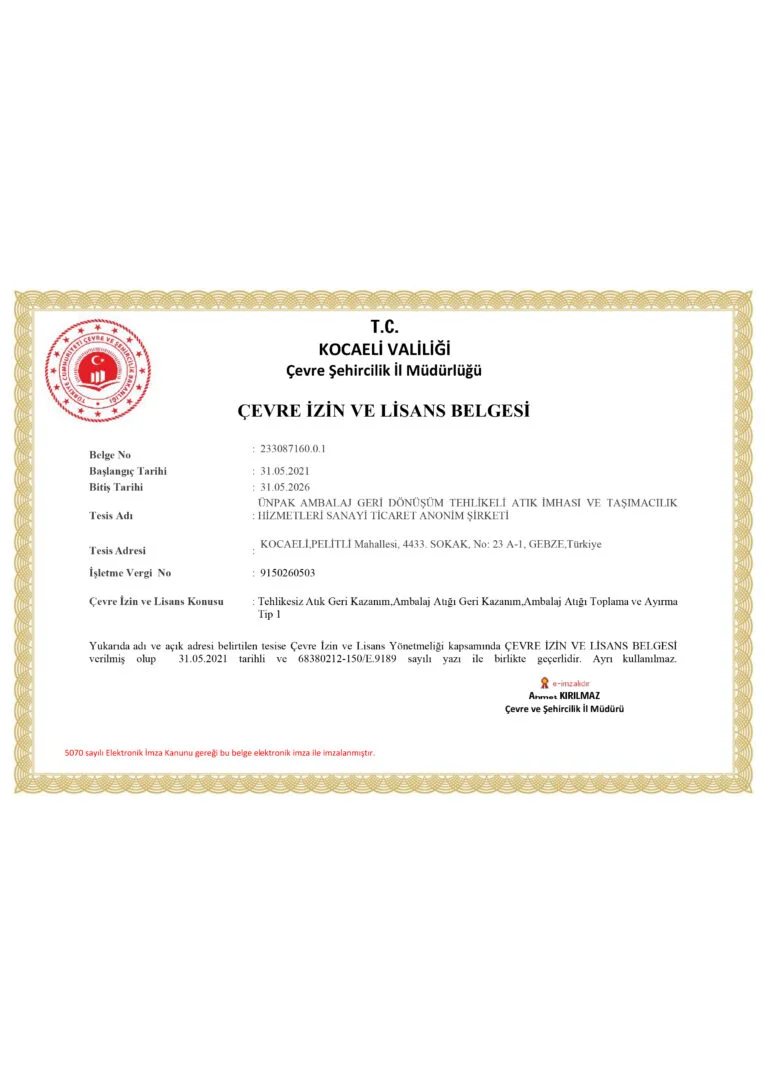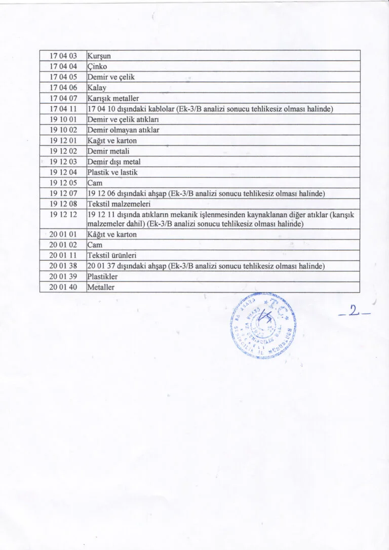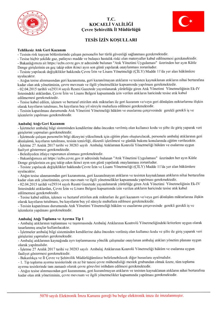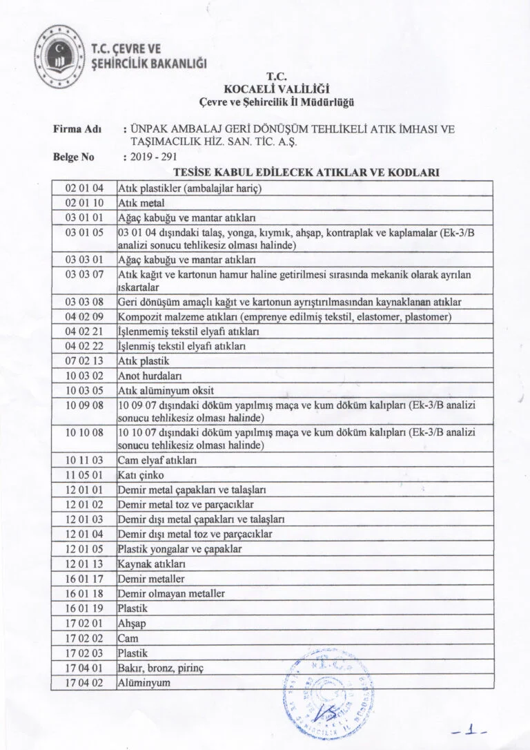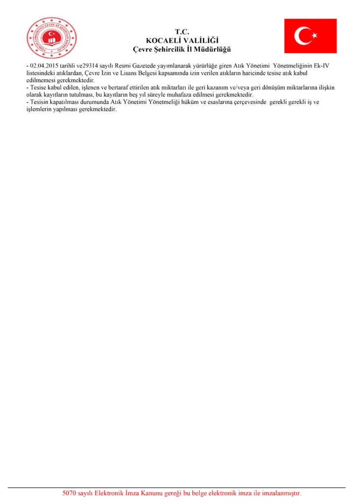 ÇEVRE İZİN ve LİSANS BELGESİ Kod Listesi 1. Sayfa 2. Sayfa 3. Sayfa 4. Sayfa DİĞER BELGELERİMİZ Çevre İzin ve Lisans Belgesi Tat Belgesi Tat Belgesi 1 Tat Belgesi 2